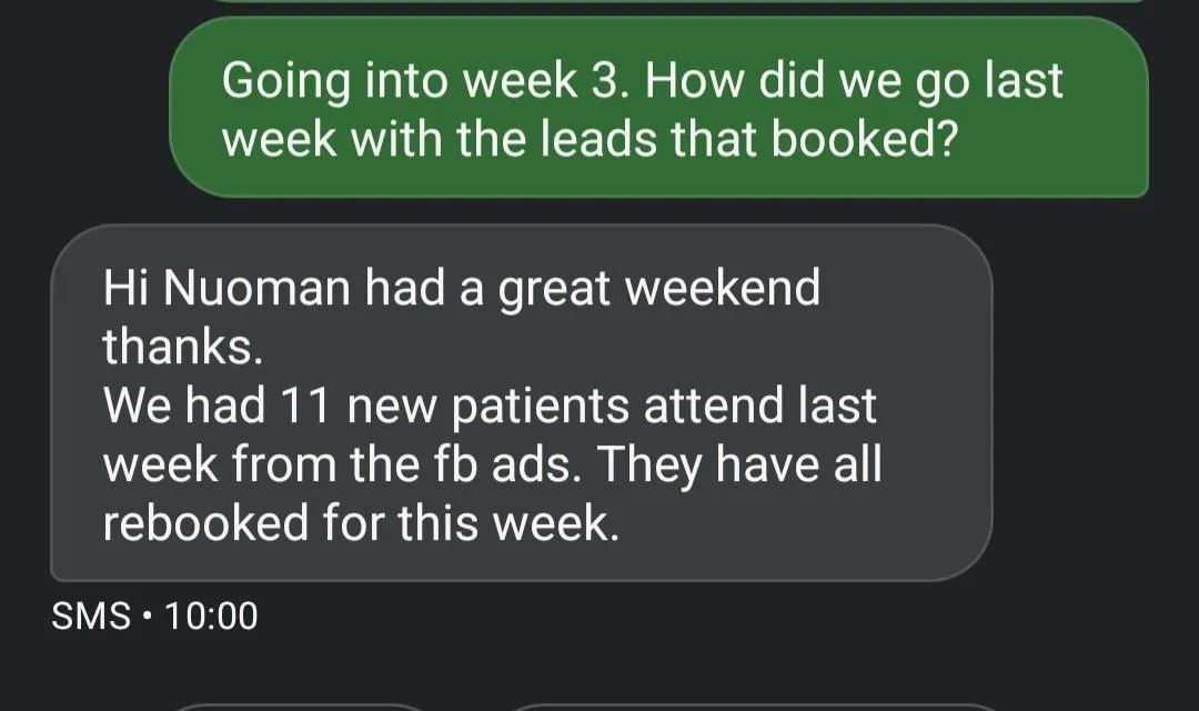 My clients typically scale from 5–10 new patients a month to 15–50+ new patients, becoming the go to clinic in their local area.